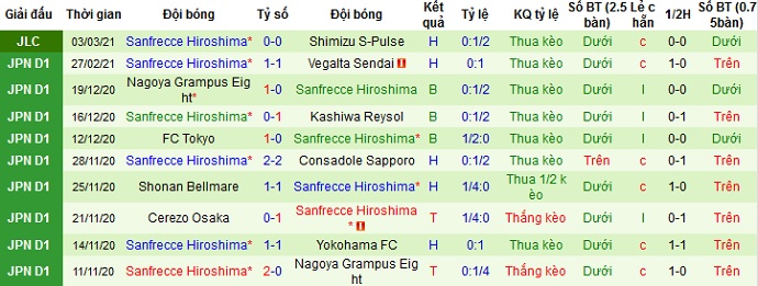 + Thống kê 10 trận gần nhất của Sanfrecce Hiroshima