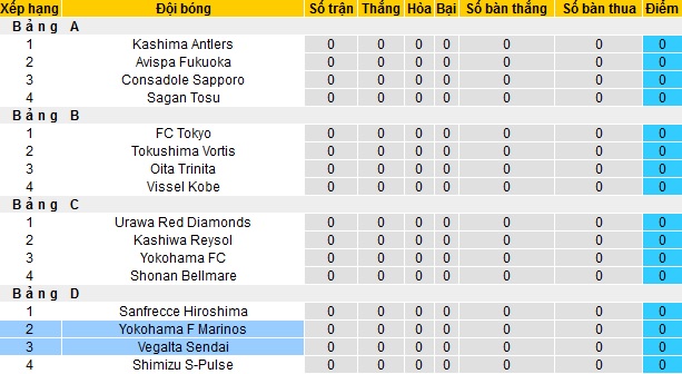 Bảng xếp hạng cúp liên đoàn Nhật Bản