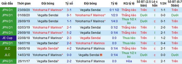 + Lịch sử đối đầu Yokohama Marinos vs Vegalta Sendai