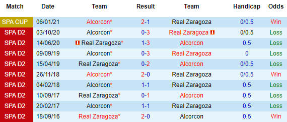 + Lịch sử đối đầu Zaragoza vs Alcorcon