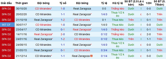 + Lịch sử đối đầu Zaragoza vs Mirandés