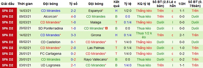 Thế nhưng phong độ gần đây của Mirandés là không tốt khi ở 5 trận gần nhất đội bóng chỉ thắng được 1 trận, hòa 2 và để thua 2 trận. Thành tích sân khách của đội bóng cũng không tốt hơn là bao với 2 trận thắng và 3 trận thua sau 5 lần du đấu gần nhất.