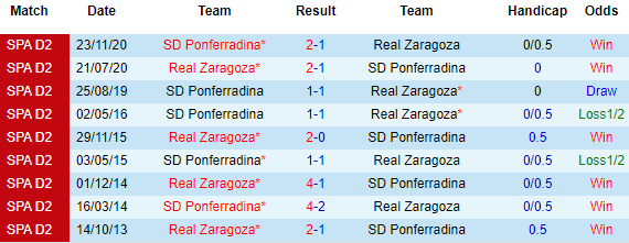 + Lịch sử đối đầu Zaragoza vs Ponferradina