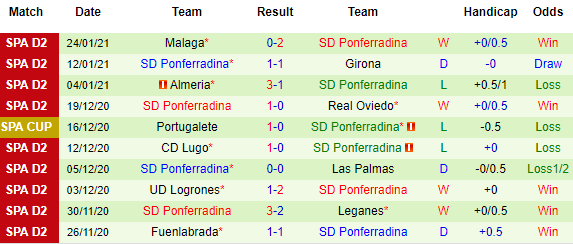 + Thống kê 10 trận gần nhất của Ponferradina