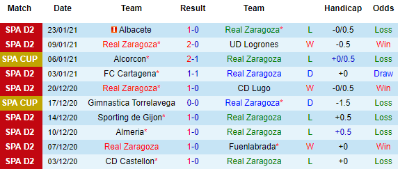 + Thống kê 10 trận gần nhất của Zaragoza