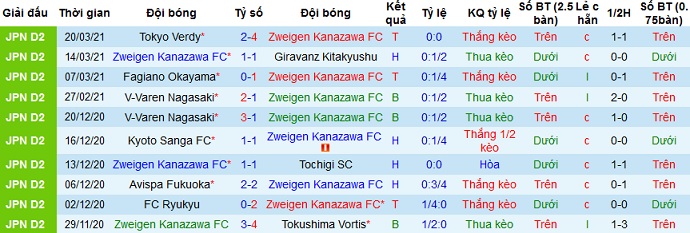 + Thống kê 10 trận gần nhất của Zweigen Kanazawa