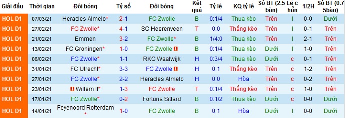 Phong độ gần đây của Zwolle vẫn khá tệ khi ở 5 trận đấu gần nhất đội bóng chỉ có được 1 trận thắng, 1 trận hòa và để thua 3 trận. Trên sân nhà thành tích của Zwolle có phần tốt hơn đôi chút với 1 trận thắng, 3 trận hòa và 1 trận thua.