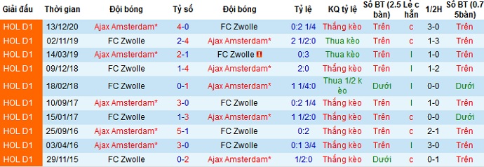 + Lịch sử đối đầu Zwolle vs Ajax Amsterdam