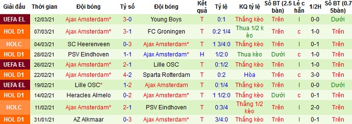 + Thống kê 10 trận gần nhất của Ajax Amsterdam