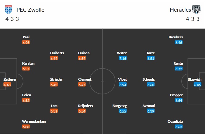 Đội hình dự kiến Zwolle vs Heracles