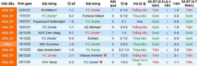 + Thống kê 10 trận gần nhất của Zwolle