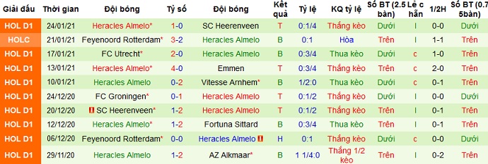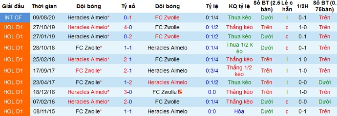Điều đáng nói là so về thành tích đối đầu ở 10 lần gặp nhau giữa hai đội Heracles đang có thành tích nhỉnh hơn với 5 trận thắng, 2 trận hòa và 3 trận thua. Và trong 3 lần Zwolle giành chiến thắng thì chỉ có 1 lần duy nhất họ có được trên sân nhà. Thế nên lựa chọn cửa dưới ở trận đấu này có lẽ vẫn an toàn hơn.