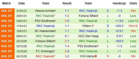 + Soi tỷ lệ kèo tài xỉu: Mức tài xỉu 2 1/2 là chưa cao so với mặt bằng chung của giải đấu. Waalwijk chơi khá thực dụng và 5/6 trận vừa qua của họ đều khép lại với tối đa chỉ 2 bàn. Vì vậy, nên chọn xỉu cho cuộc chiến này!