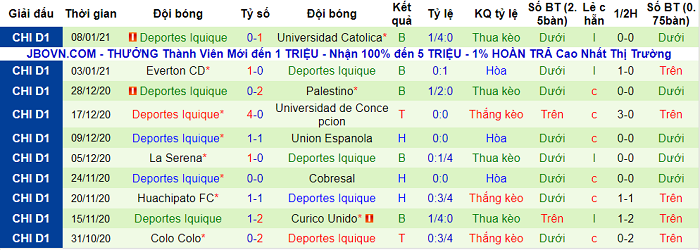 - Thống kê 10 trận gần nhất của Deportes Iquique