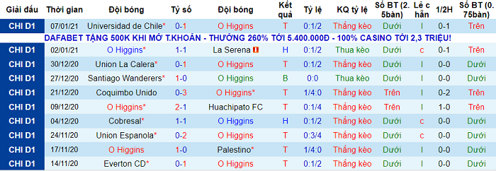 Nên nhớ rằng O’Higgins thắng tới 7/10 trận vừa qua thuộc khuôn khổ giải VĐQG Chile. Riêng trên sân nhà, O’Higgins bất bại và thu về 8/12 điểm tối đa từ 4 lần ‘tiếp khách’ gần đây.