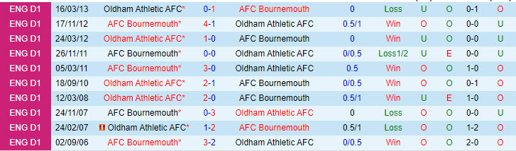 + Lịch sử đối đầu Oldham vs Bournemouth