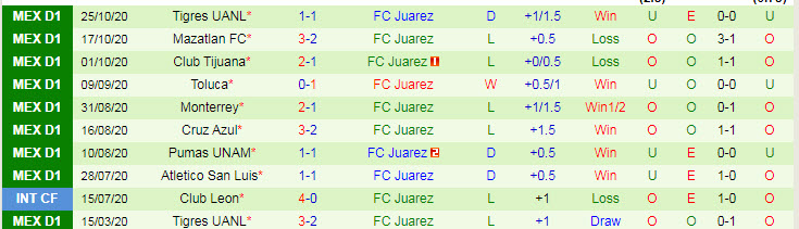 + Thống kê 10 trận gần nhất của Juarez