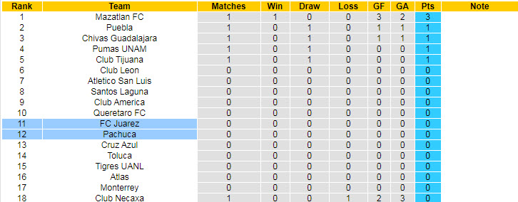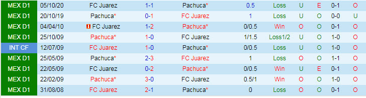 Phong độ và thống kê đối đầu Pachuca - Juarez gần đây: