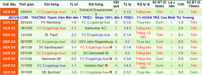 - Thống kê 10 trận gần nhất của Erzgebirge Aue