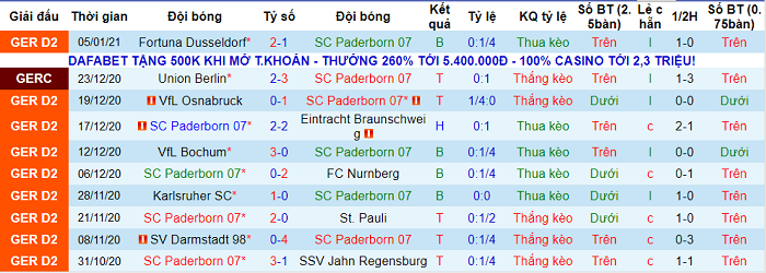 - Thống kê 10 trận gần nhất của Paderborn