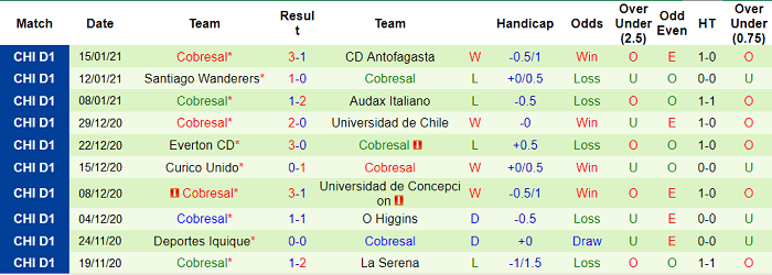 Khả năng giành điểm của Cobresal vào thứ Hai (18/1) càng thấp khi họ không có được thành tích tốt trên sân khách. Cobresal không thắng 5/6 trận sân khách vừa qua thuộc khuôn khổ giải VĐQG Chile và nhận tới 4 thất bại.