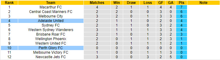 Trái ngược với đội chủ sân HBF Park, đội khách Adelaide bước vào trận đấu chiều nay với phong độ vào phom bất bại cả 2 lượt trận đã đá. Cụ thể, họ hoà với tỷ số 0-0 ở trận mở màn trên sân của Western United. Mới đây, Adelaide có 90 phút ấn tượng khi đánh bại đương kim á quân Melbourne City với tỷ số 2-0. Nếu nhìn rộng hơn, Adelaide đang có chuỗi 7 trận bất bại tại giải đấu số 1 xứ sở Kangaroo.