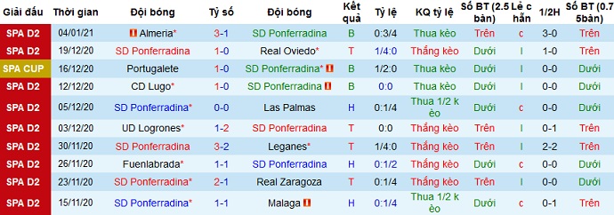 Thế nhưng thành tích gần đây của Ponferradina là khá tệ, Ở 5 trận gần nhất Ponferradina chỉ có được 1 trận thắng, 1 trận hòa và để thua 3 trận. Tuy nhiên trên sân nhà Ponferradina lại trình diễn một bộ mặt khác hẳn khi bất bại ở 5 trận gần nhất tại đây với 3 trận thắng và 2 trận hòa.