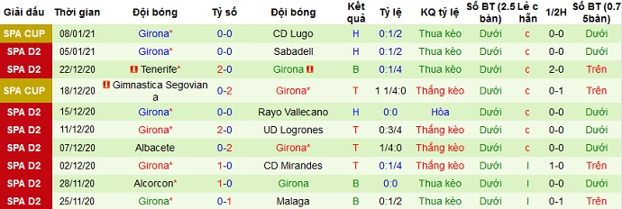 + Thống kê 10 trận gần nhất của Girona