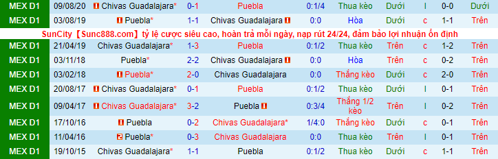 + Lịch sử đối đầu Puebla vs Guadalajara Chivas