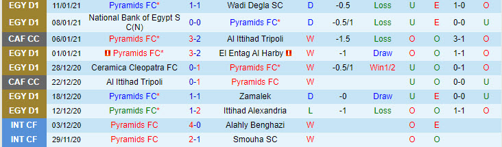 + Thống kê 10 trận gần nhất của Pyramids