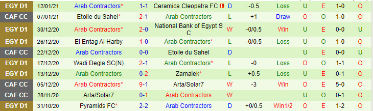 + Thống kê 10 trận gần nhất của Arab Contractors