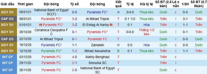 + Soi tỷ lệ kèo châu Á: Với phong độ khá tốt trong giai đoạn gần đây của Pyramids đồng thời đội bóng lại được thi đấu trên sân nhà nên dễ hiểu khi đội chủ nhà được đánh giá là đội cửa trên. Ngoài ra trong mùa giải trước Pyramids đã vượt qua đối thủ trong cả hai lượt trận nên chọn cửa trên ở lần đối đầu này sẽ là hợp lý.