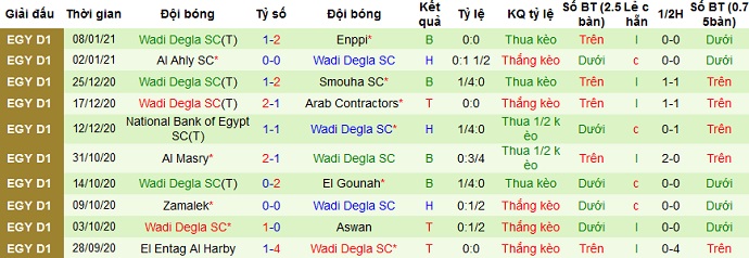 + Thống kê 10 trận gần nhất của Wadi Degla