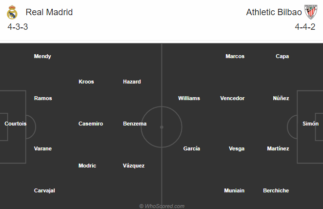 Trong khi đó phía đối diện, Bilbao thi đấu không tốt giai đoạn gần đây, 9 trận trước đó đội bóng xứ Basque để mất điểm tới 7 lần (thua 4, hòa 3). Vì vậy về mặt lý thuyết, Real Madrid xứng đáng được tin tưởng vào khả năng giành chiến thắng ở trận bán kết Siêu Cúp sắp tới.