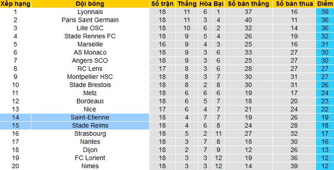 Hiện tại Saint-Etienne đang kém các đội trong tốp đầu có suất dự cúp châu Âu tới 12 điểm. Thế nhưng ở phía sau Reims chỉ hơn các đội trong nhóm cầm đèn đỏ 3 bậc với khoảng cách đang là 5 điểm.