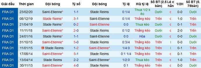 + Lịch sử đối đầu Reims vs Saint-Etienne
