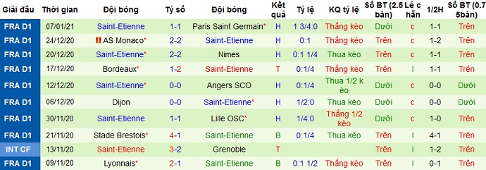 + Thống kê 10 trận gần nhất của Saint-Etienne