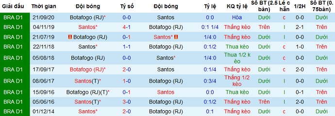 + Soi tỷ lệ kèo châu Á: Mặc dù Santos đang có phong độ khá tệ, nhưng so với đội bét bảng thì vẫn tốt hơn rất nhiều nên việc đội chủ nhà được đánh giá là cửa trên với kèo chấp -0,75 là hoàn toàn dễ hiểu. Ngoài ra Santos cũng đang bất bại trước Botafogo trong cả 5 lần chạm trán gần nhất với 2 trận thắng và 3 trận hòa.