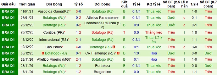 Trong 5 trận gần nhất Botafogo có được 1 trận thắng trước chính Coritiba, để thua ở cả 4 trận còn lại. Trước đó thành tích tệ hại của đội bóng cũng chẳng khá hơn khi thua tới 6 trận liên tiếp. Trận thắng trước Coritiba cũng là lần có điểm duy nhất của Botafogo trong 6 lần du đấu gần đây.