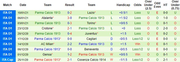 + Thống kê 10 trận gần nhất của Parma