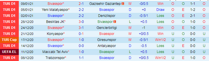 + Thống kê 10 trận gần nhất của Sivasspor