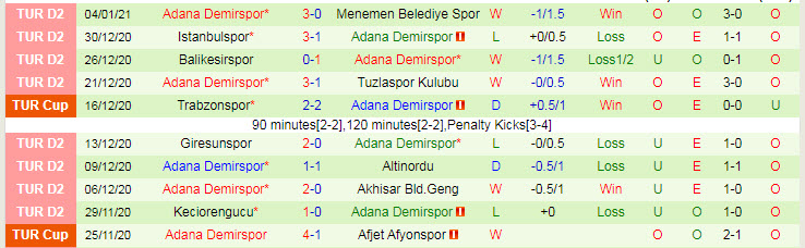 + Thống kê 10 trận gần nhất của Adana Demirspor