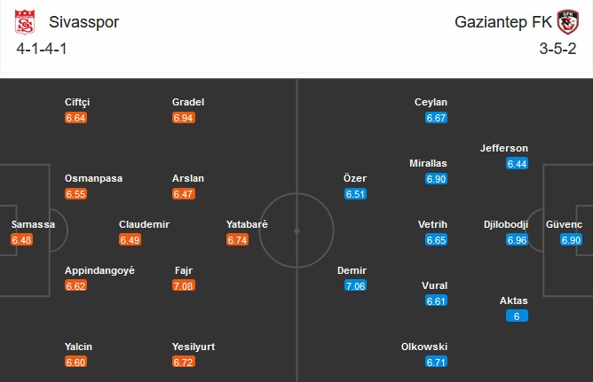 Đội hình dự kiến Sivasspor vs Gaziantep FK:
