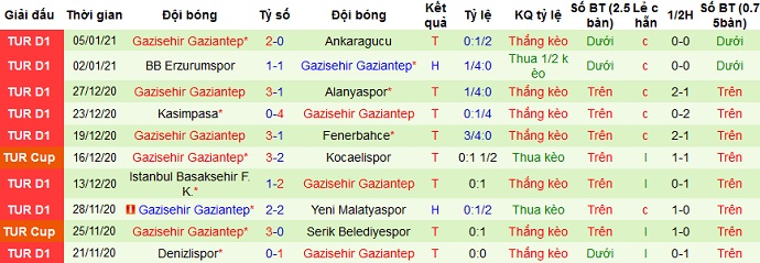 + Thống kê 10 trận gần nhất của Gaziantep FK