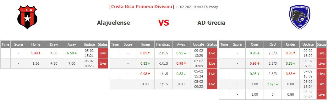 Ngay tại thời điểm công khai trên sàn giao dịch châu Á, giới điều hành thị trường đều có chung nhận định Alajuelense là đội bong sẽ đút túi 3 điểm. Thực tế, họ còn dự đoán đội chủ nhà giành một chiến thắng cách biệt.