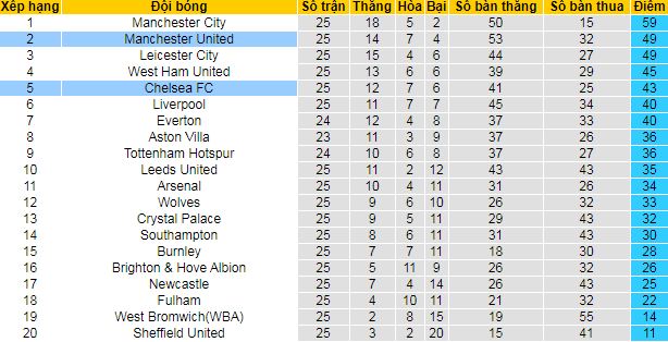 + Bảng xếp hạng Ngoại Hạng Anh