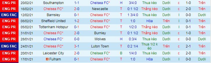 + Thống kê 10 trận gần nhất của Chelsea