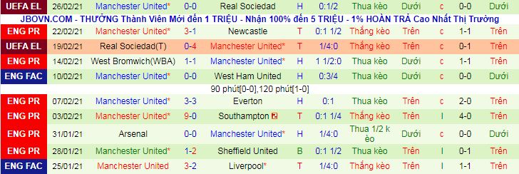 + Thống kê 10 trận gần nhất của MU