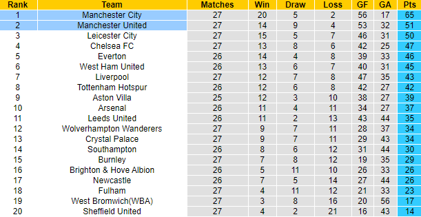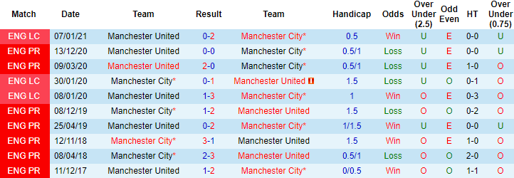Phong độ và thống kê đối đầu Man City vs MU