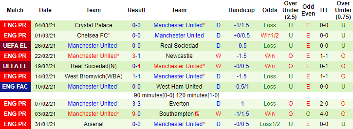 + Thống kê 10 trận gần nhất của MU